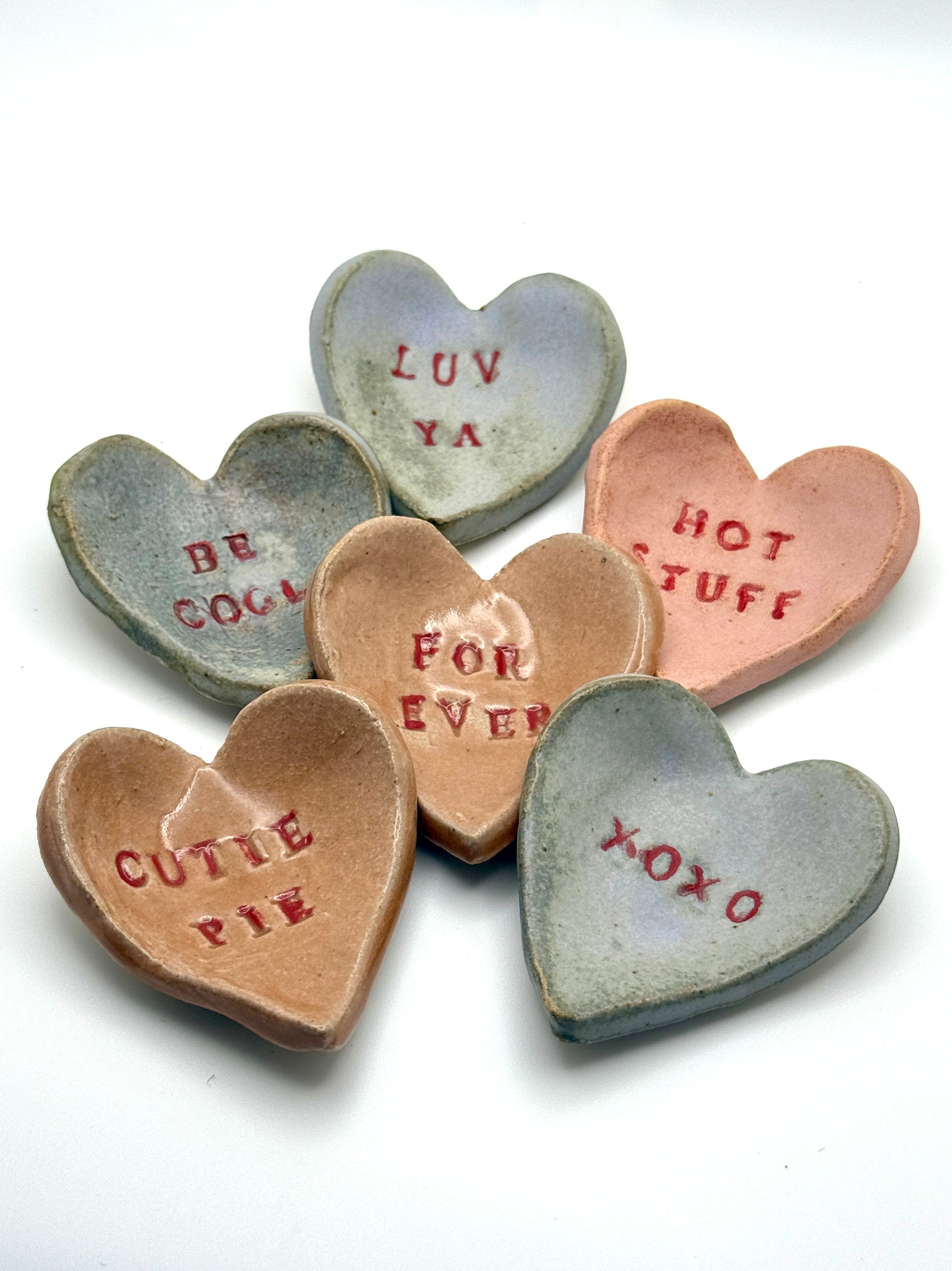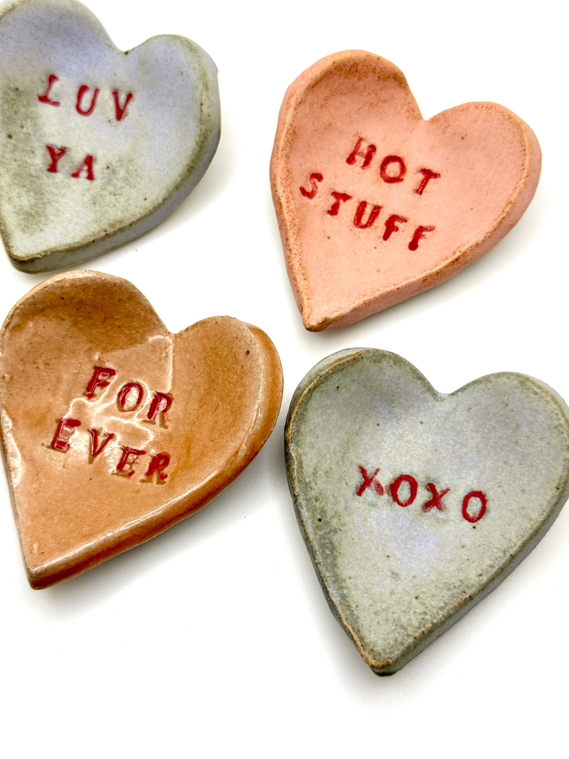Perfect to tell your friend or lover exactly how you feel about them. These 2" stoneware ring dishes will last forever! (Sold indivdiually)