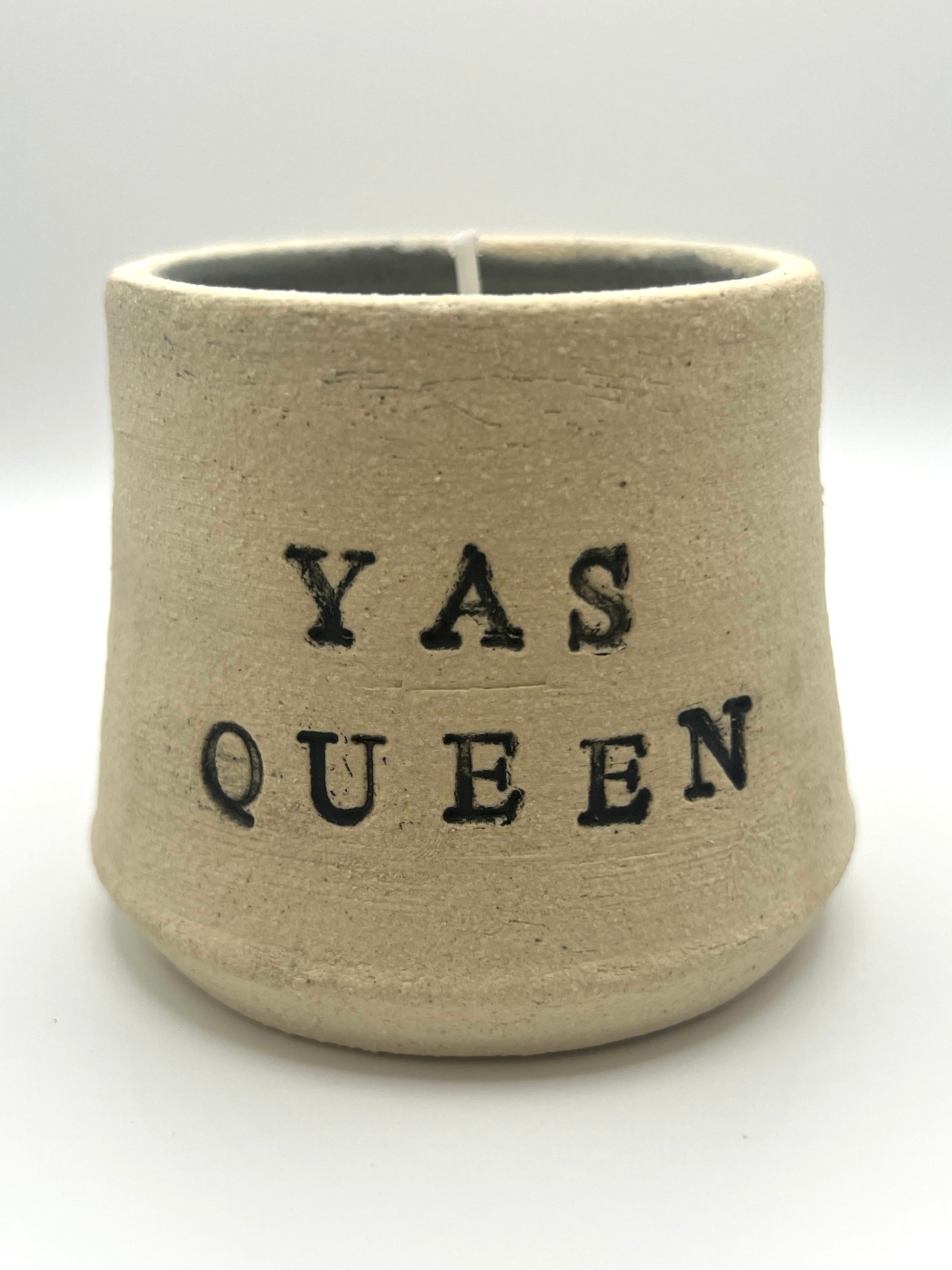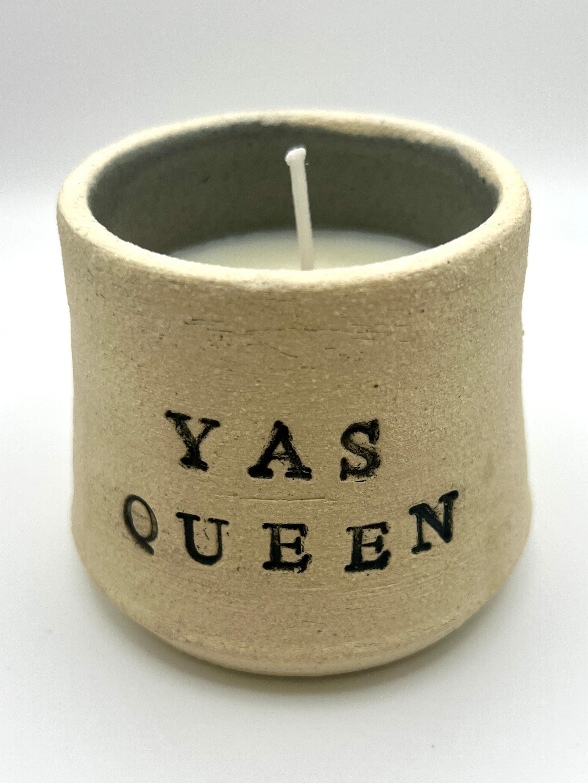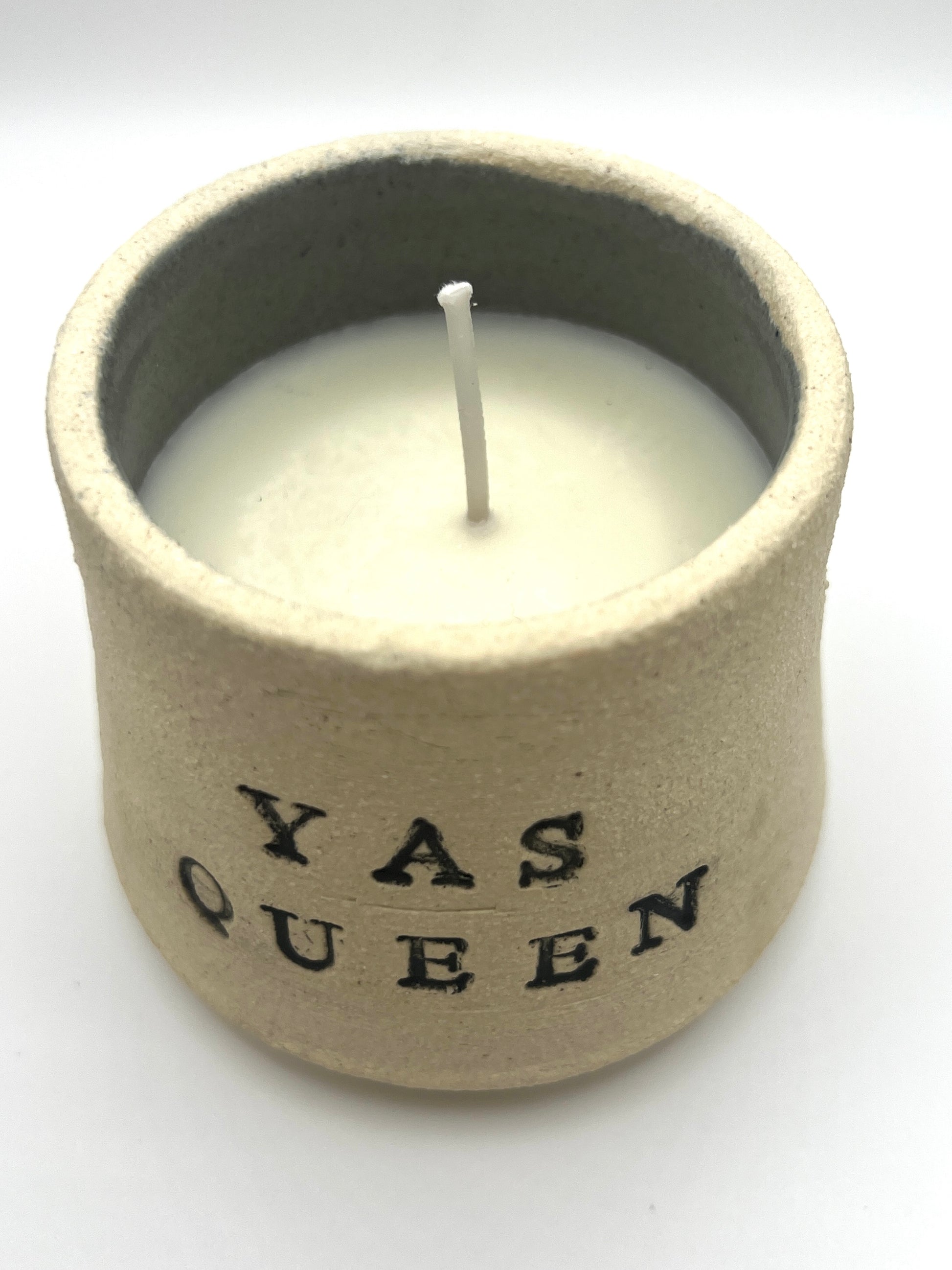 Handmade and handpoured ceramic candle with a gentle vanilla scent. Candles are approximately 4"x3" with a raw stoneware exterior and dark grey interior.