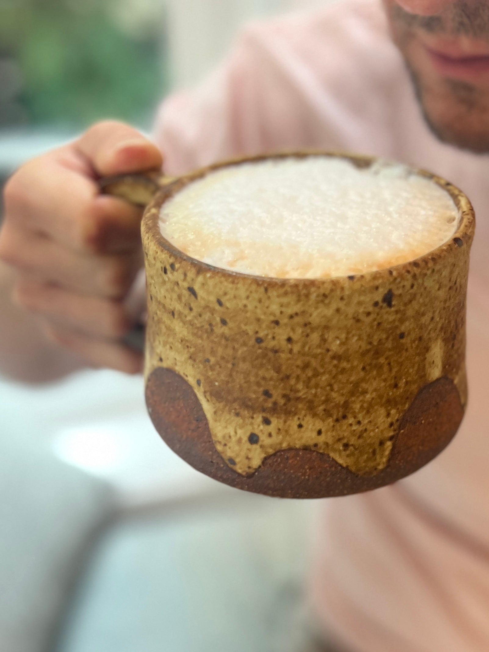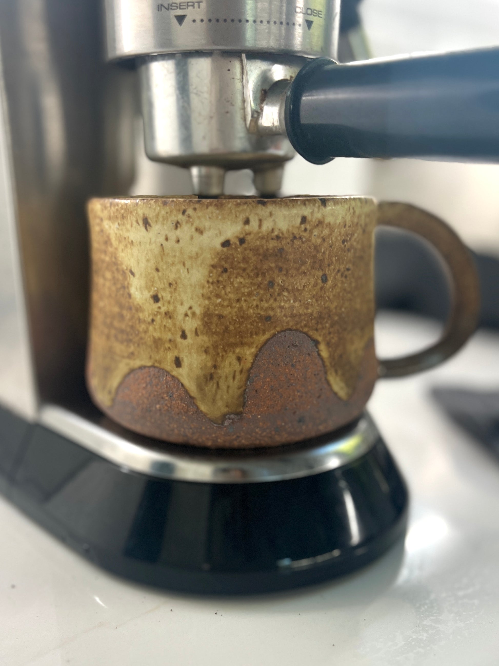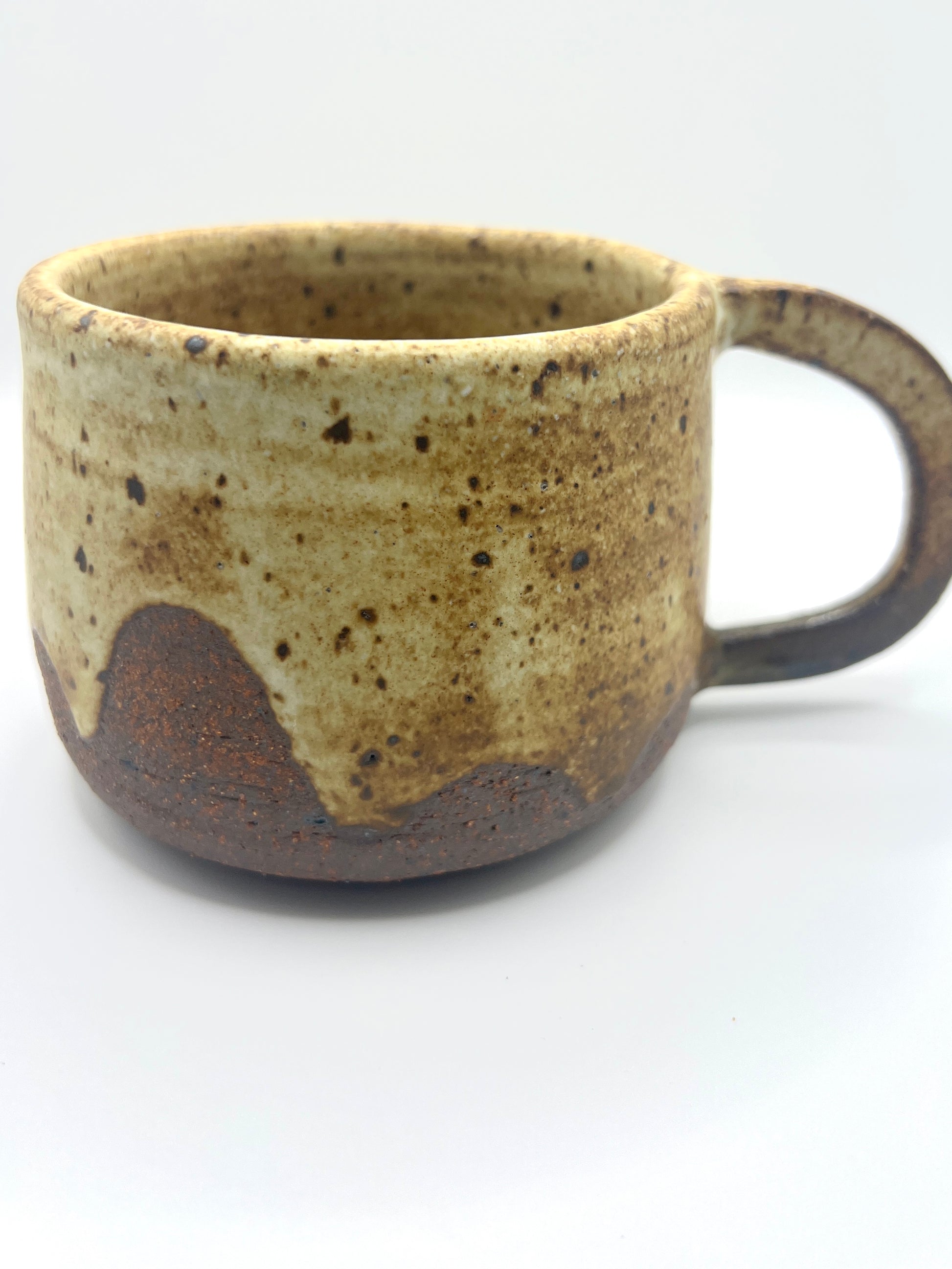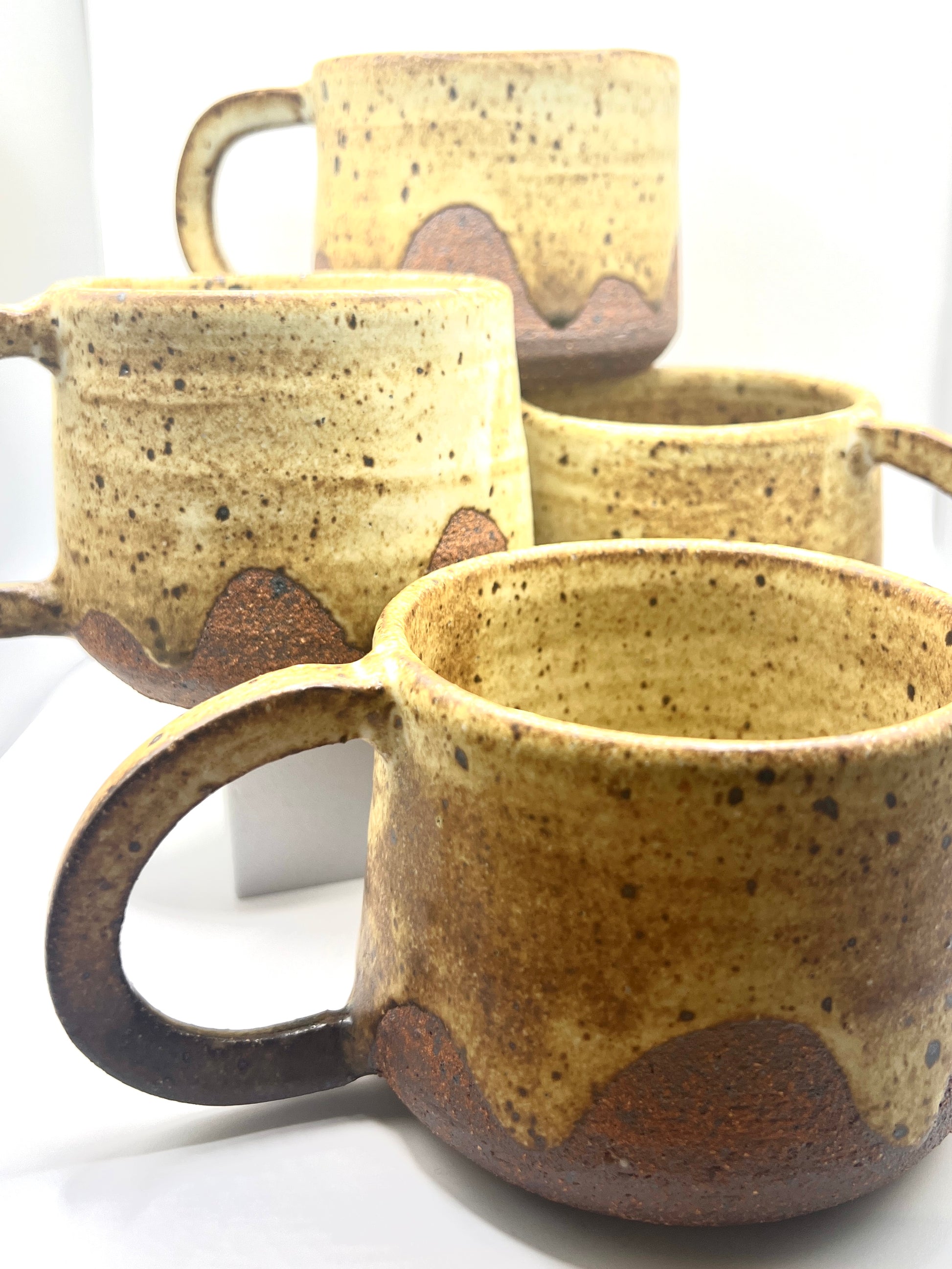 Hand thrown stoneware mugs that are dishwasher and food safe. These oversized coffee mugs feel great in the hand. Each cup is unique! Cups are 3.5 inches high, 4 inches wide, with a handle that extends up to 1.5 inches at the center. Buy as a set of 2 or a set of 4!