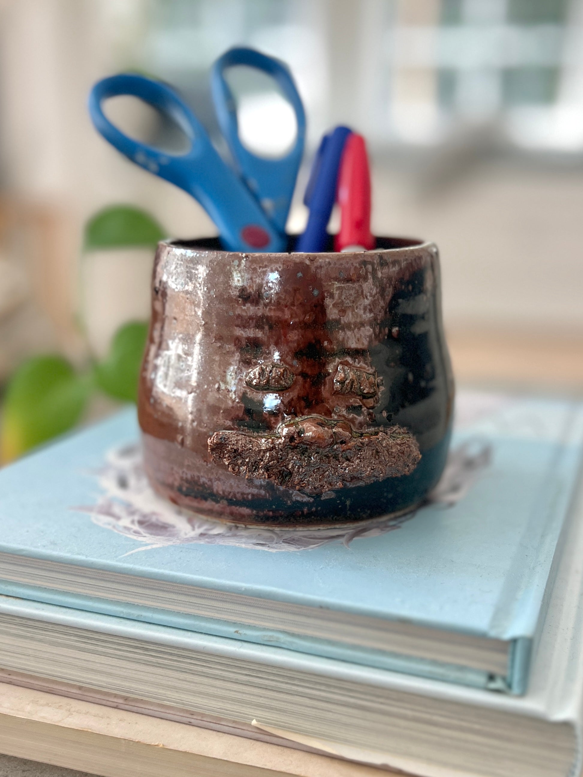 Herman is a hand thrown and hand sculpted Zaddy ceramic vessel. Approximately 3.5" x 3.5", this sculptural container is food and dishwasher safe. Use him to organize your office pencils, grow a plant, or hold your hairbrush.