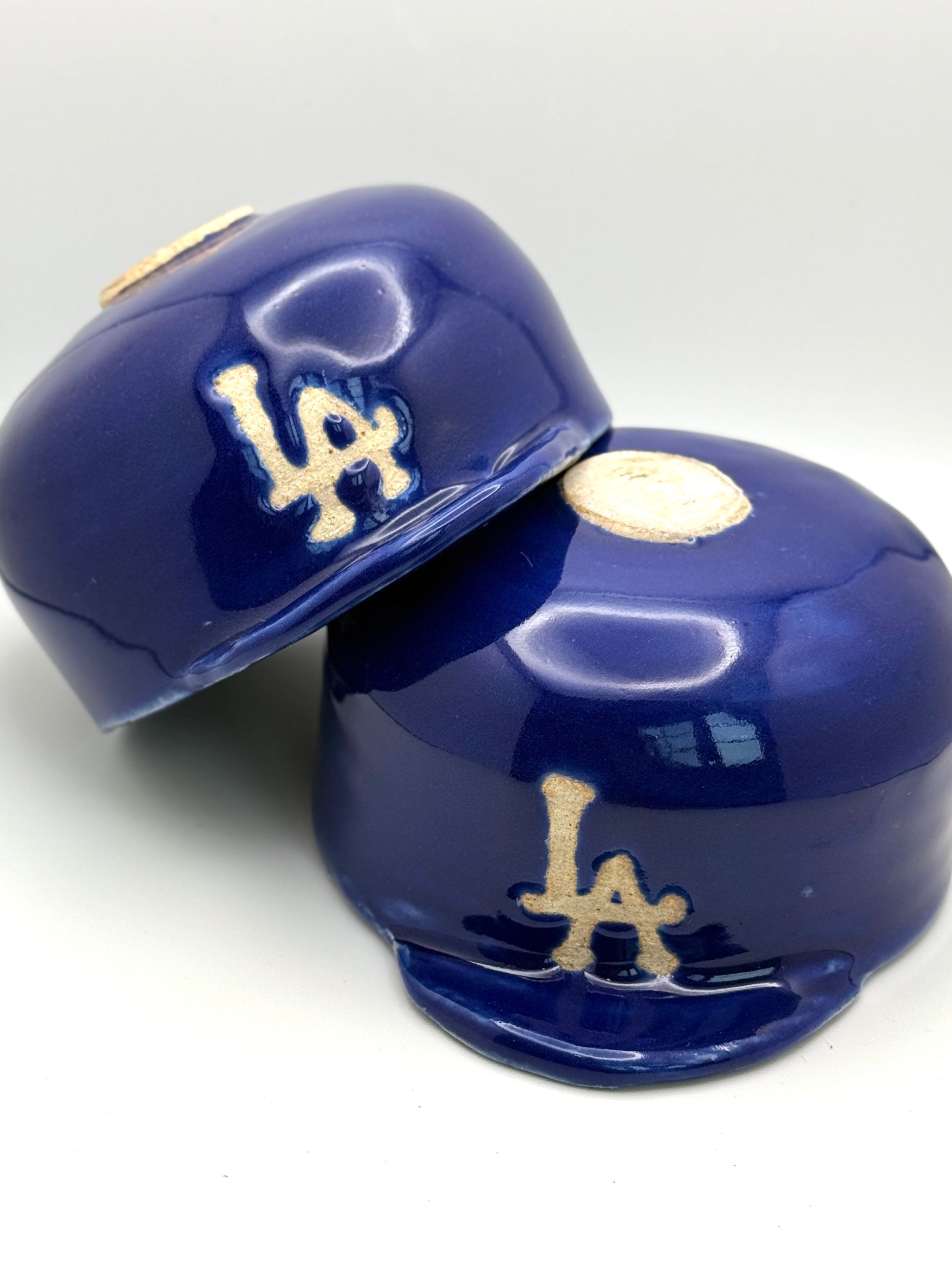 Bring the ballpark home to your living room with ceramic helmets for ice cream, nachos, or cracker jacks! Each LA Dodgers bowl is approximately 3 inches deep and 4.5 inches wide. Food and dishwasher safe, although hand washing is recommended. Sold in set of 2.