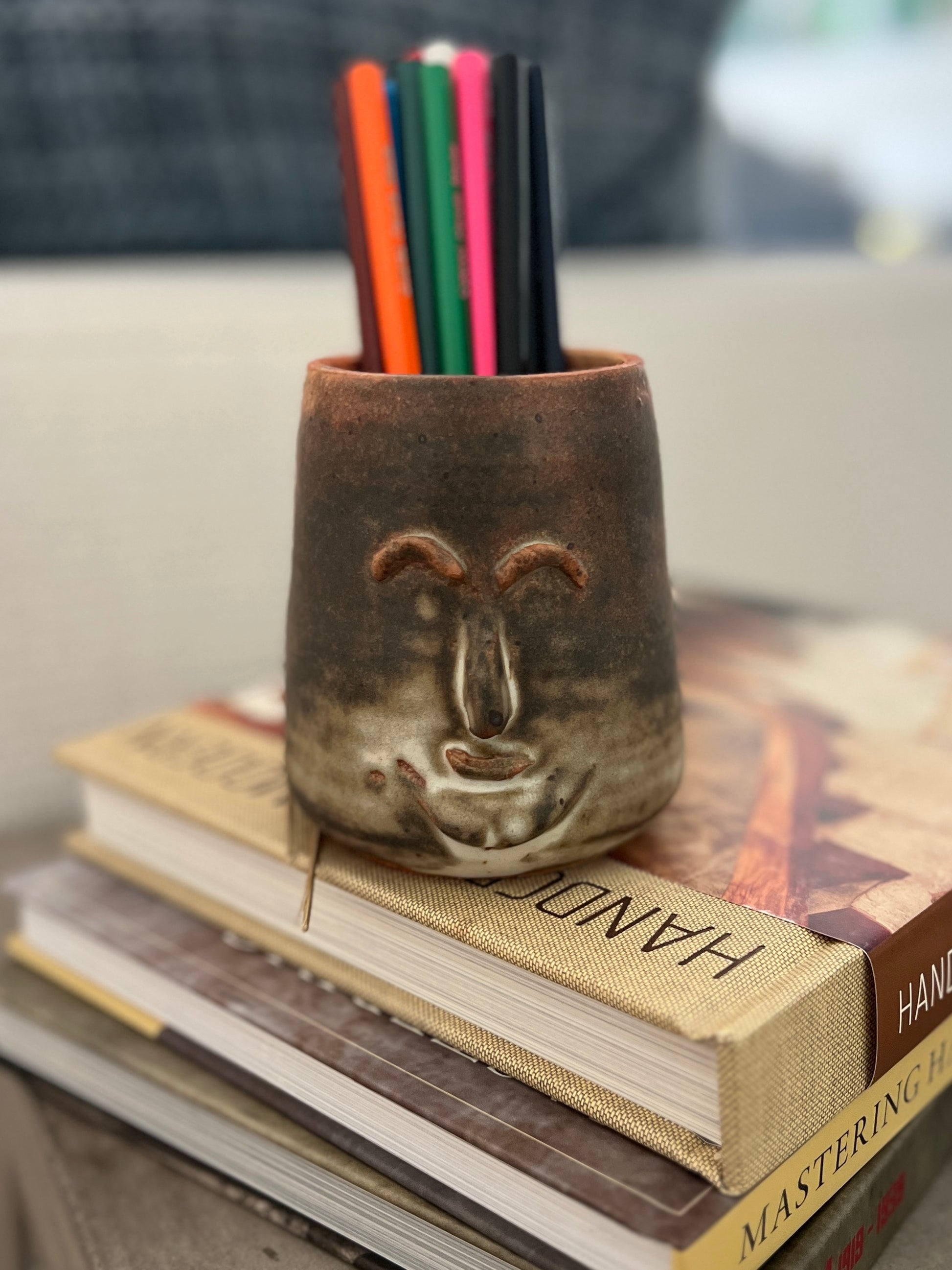 Tony is a hand thrown and hand sculpted Zaddy ceramic vessel. Approximately 4" x 3.5", this sculptural container is food and dishwasher safe. Use him to organize your office pencils, grow a plant, or hold your hairbrush.