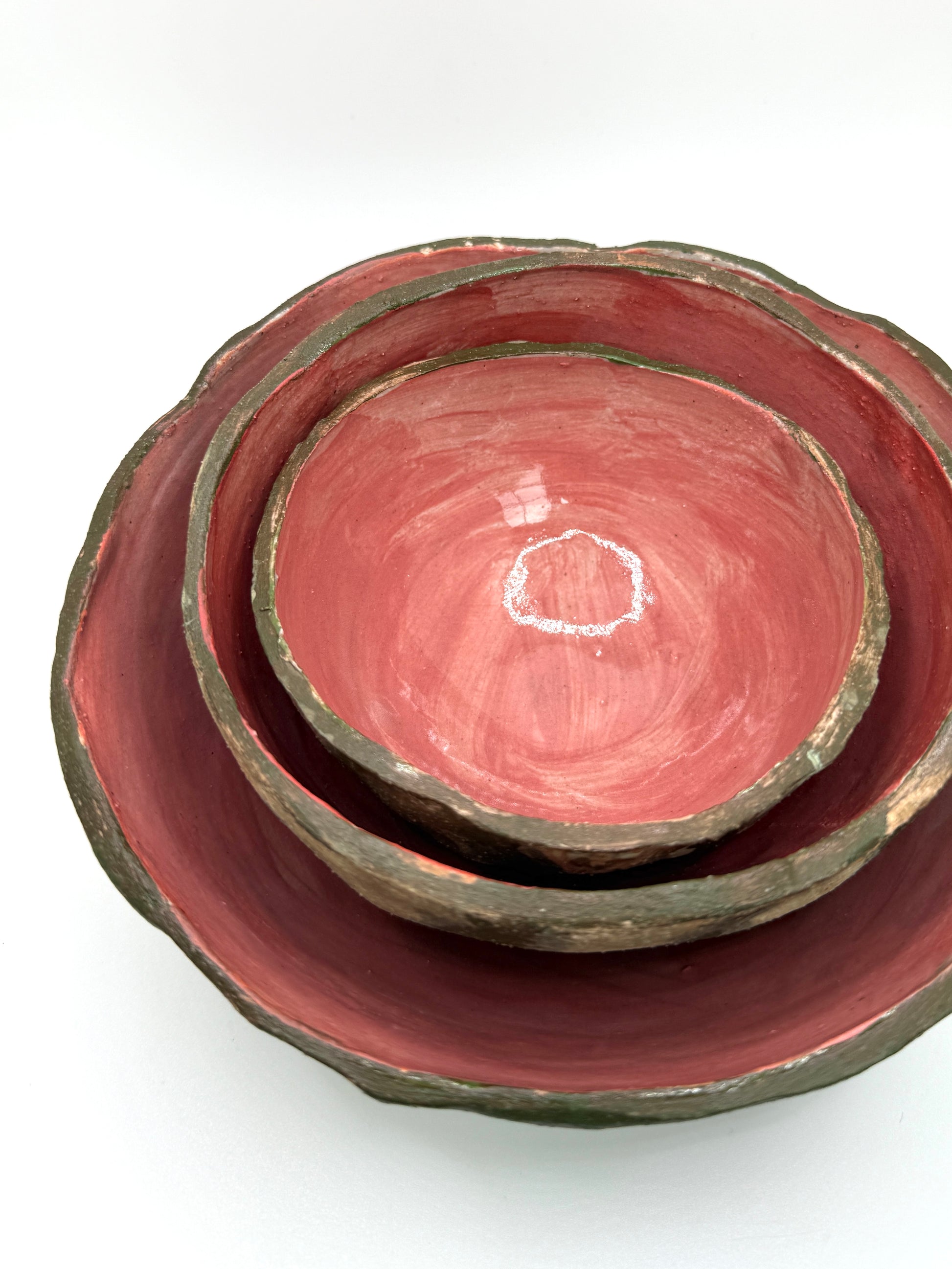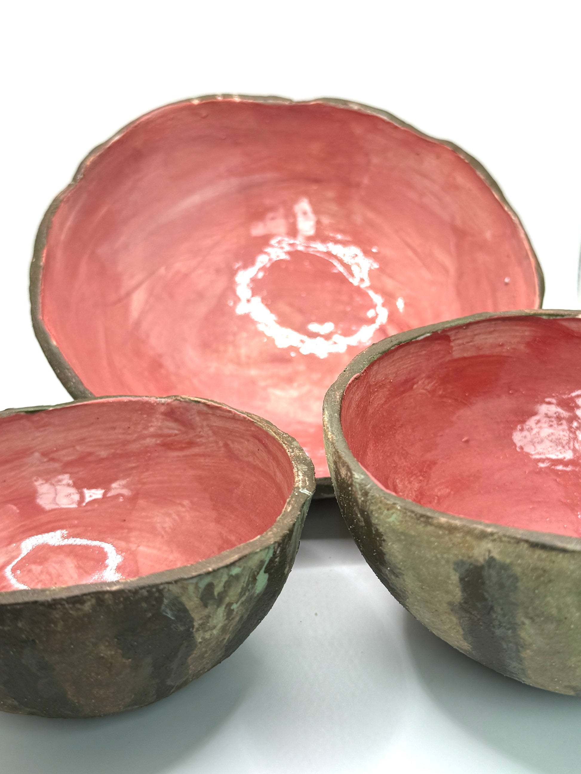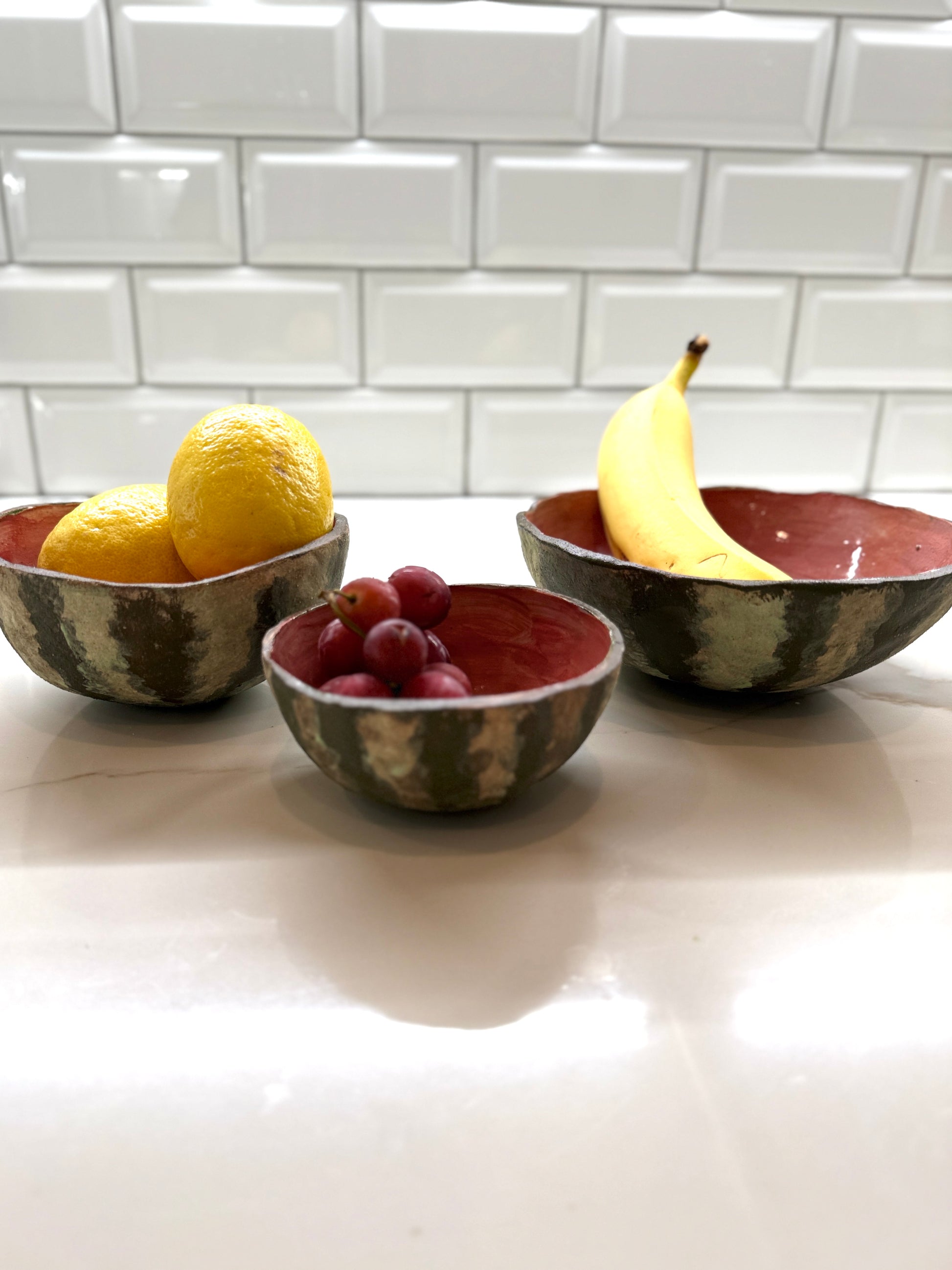Handbuilt ceramic watermelon bowls make summer's sweetest treat available year round! Food safe, handwashing recommended. Sold as a set of 3.